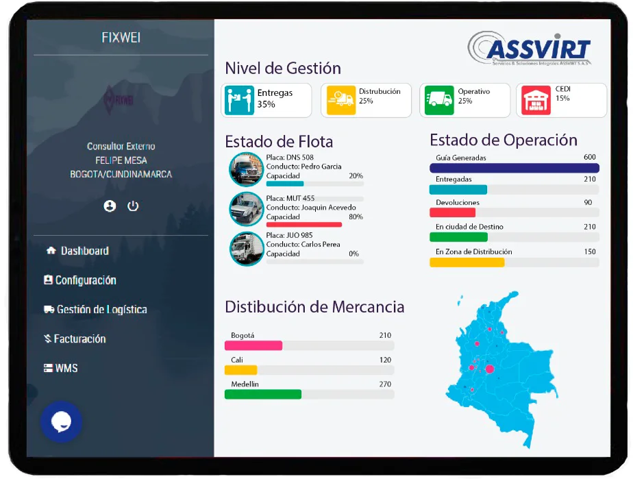 Controle la cadena de suministro a través de la generación de guías o remesas, programación de recolecciones y la gestión de entrega de un envío en tiempo real, garantizando la trazabilidad de la información.