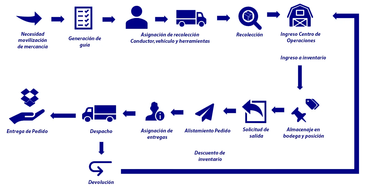 Gestione la recolección de la totalidad de la mercancía objeto de distribución de sus clientes y realice el ingreso de la misma a centro de distribución de origen en tiempo real.